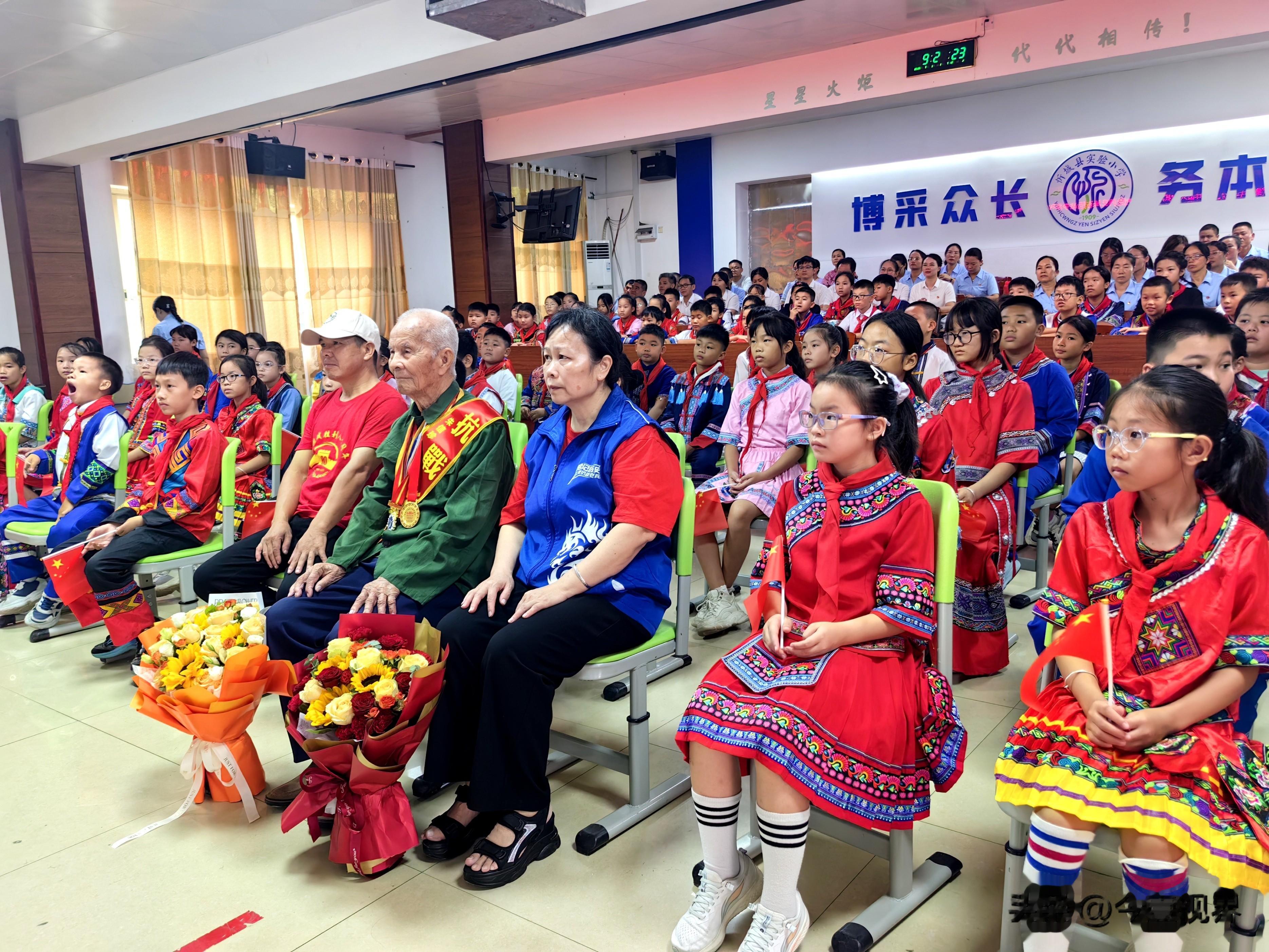2025年9月3日是中国人民抗日战争暨世界反法西斯战争胜利80周年纪念日。当日,广西来宾市忻城县实验小学会议室内,忻城县委党史研究室、县文联丶县新华书店全体干部职工及县实验小学全校师生与104岁抗战老兵朱信珍、少数民族群众共同收看纪念中国人民抗日战争暨世界反法西斯战争胜利80周年大会直播盛况,共同回顾那段波澜壮阔的抗战历史,缅怀先烈的丰功伟绩。