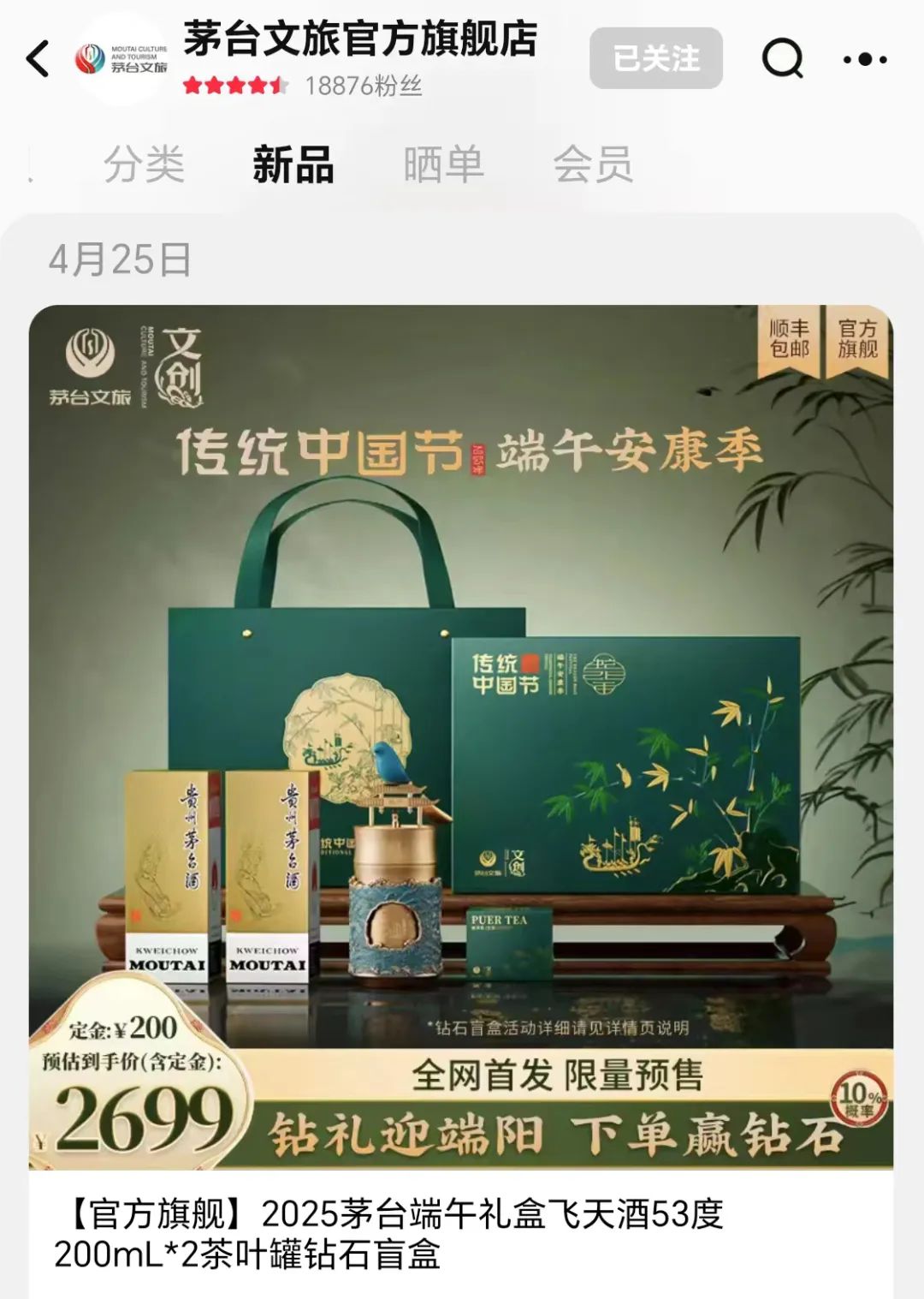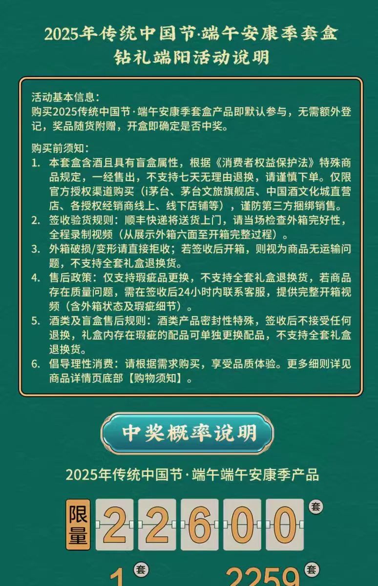 4月25日,令广大消费者翘首以盼的“2025传统中国节·茅台端午安康季”套盒终于在茅台文旅各平台官方旗舰店正式上线,限量发售,独具匠心的茅台文旅端午礼盒首日上线实现开门红。