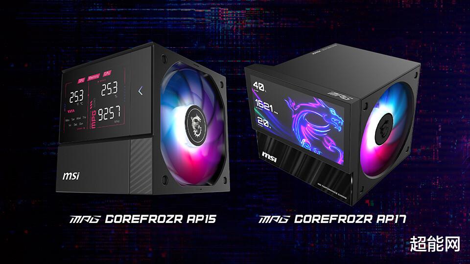 MPG COREFROZR AP15/AP17双塔风冷散热器在本次CES 2026中首次亮相。一眼可见,他们的顶盖都集成了大尺寸屏幕。MPG COREFROZR AP15是数显屏,配备六根高效热管和AMD X3D处理器优化铜底,并且做了避让内存处理,保证良好的安装兼容性。而MPG COREFROZR AP17是6英寸的LCD屏,在配套软件内可导入个性化的主题内容,配备八根6mm热管和高效导热的镀镍铜底,提供顶级散热性能。