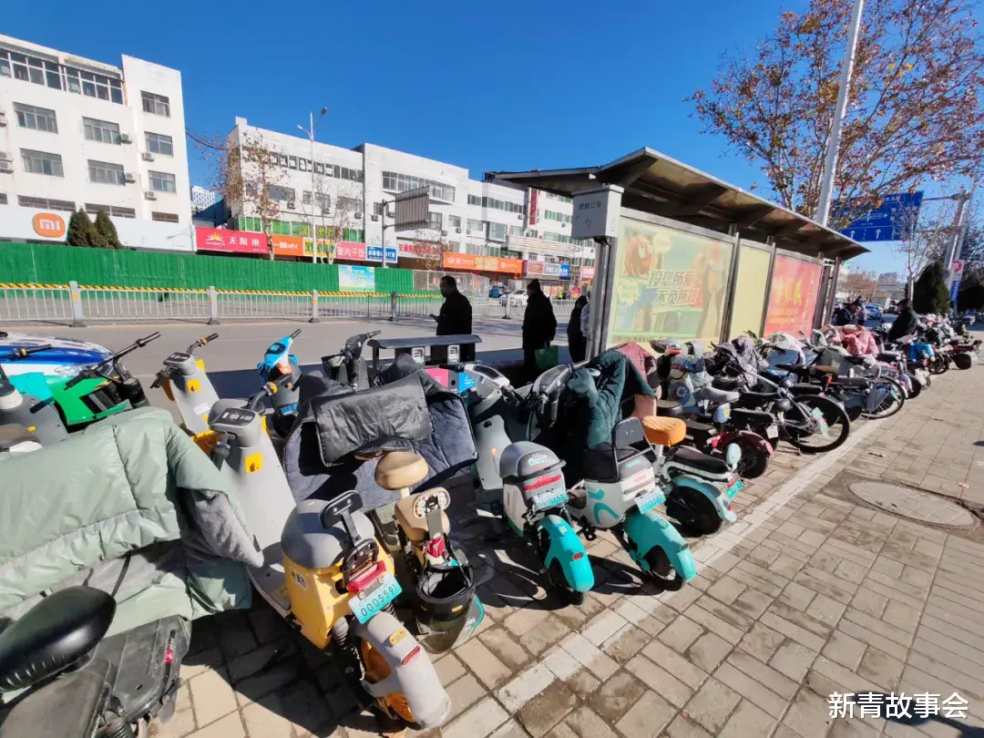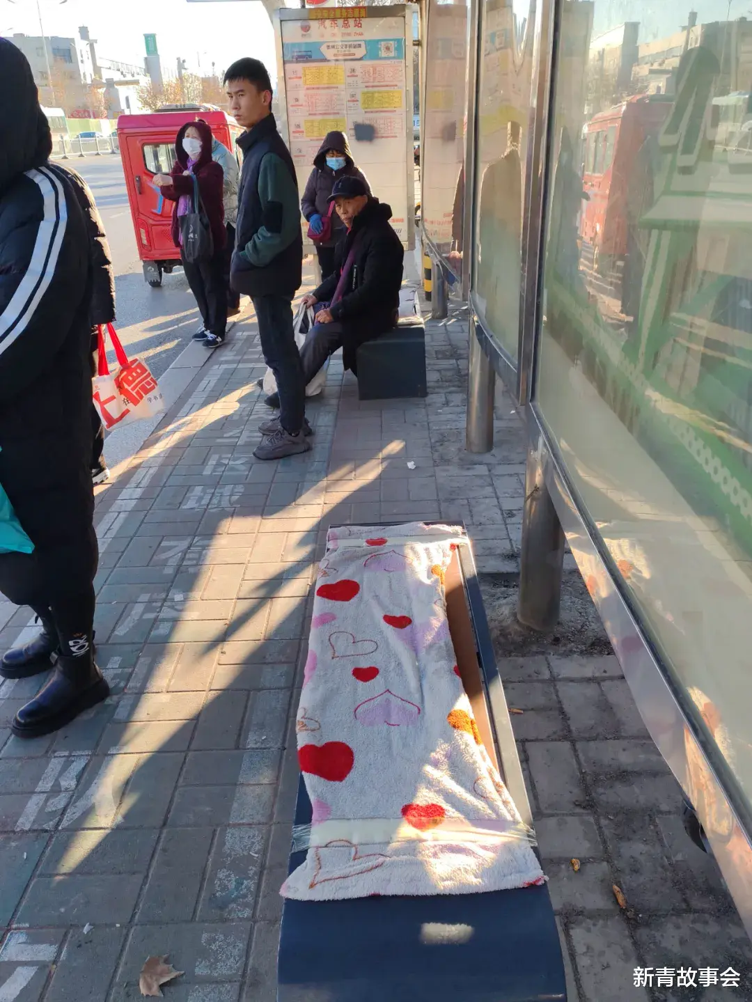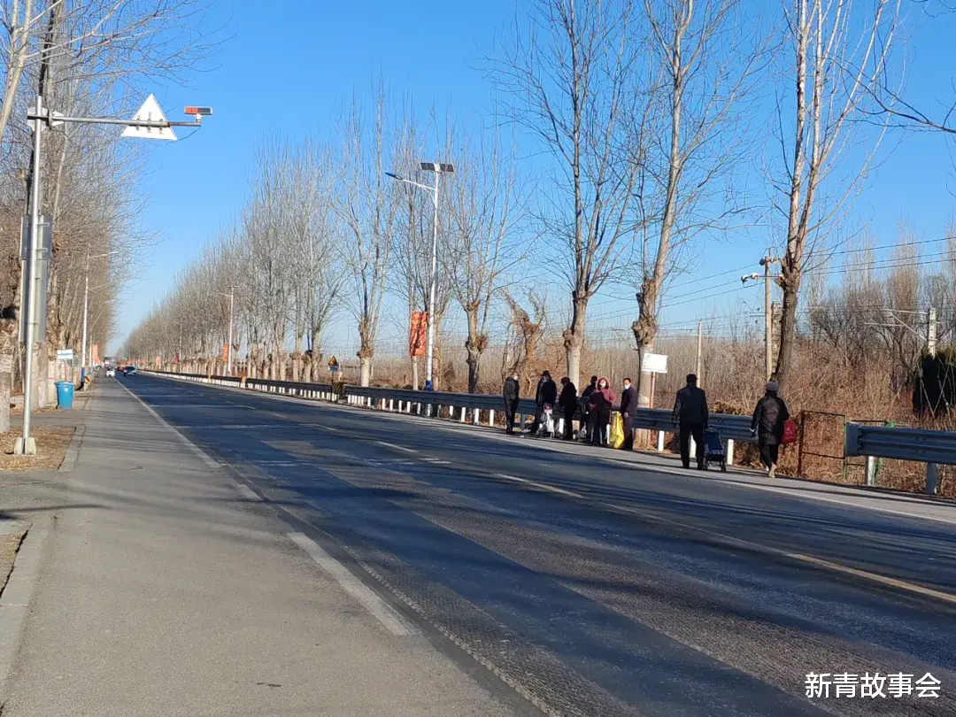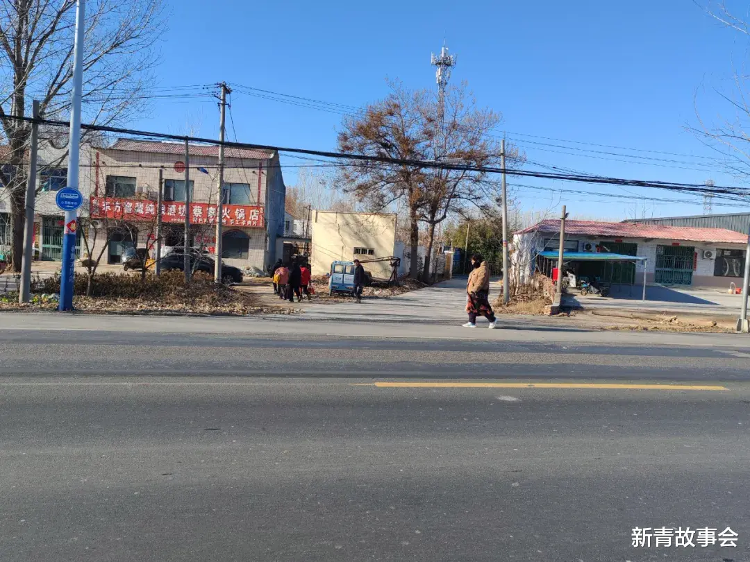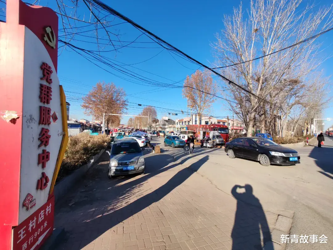 ▼到了王村店公交站牌,90%的乘客都下来了,都是来赶大集的。