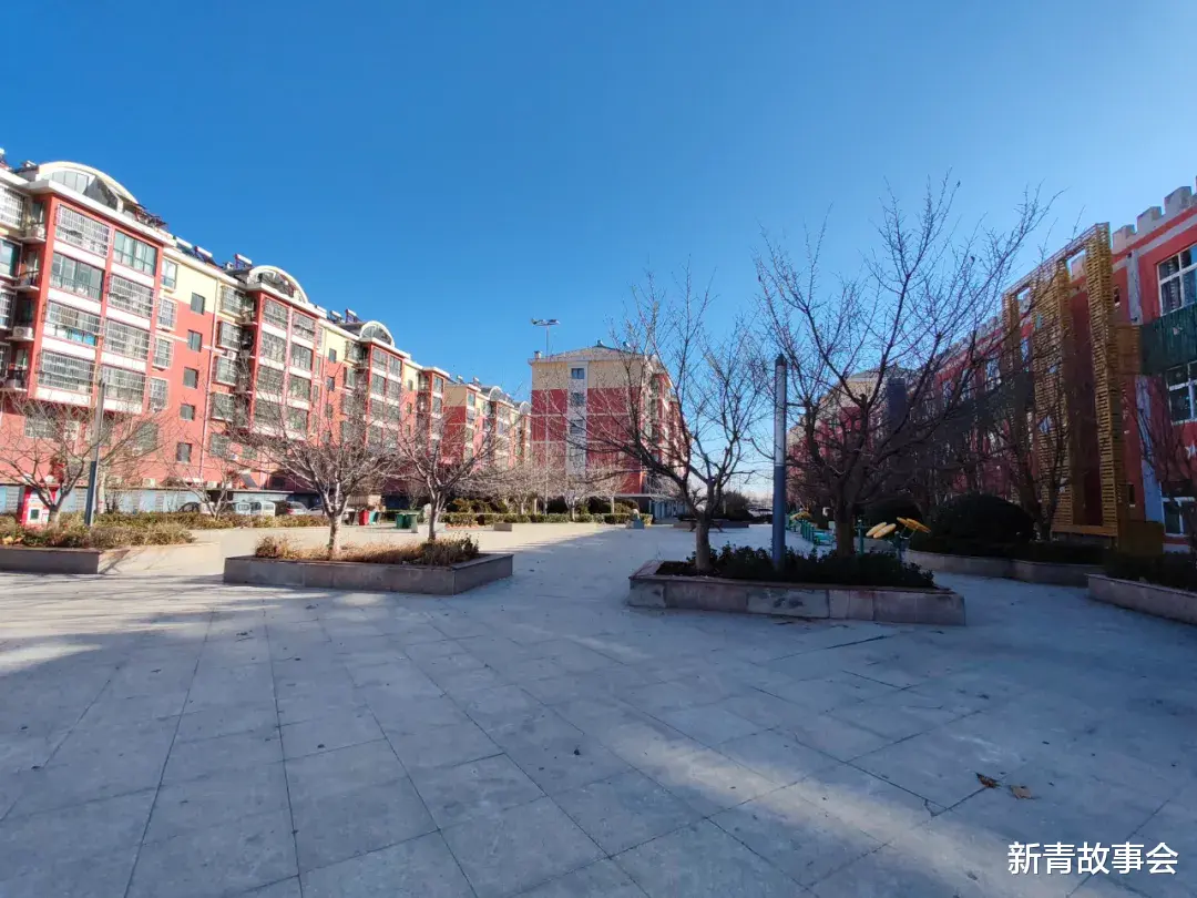 ▼过了牌楼,南侧有一排住宅楼,遮了阳,有点冷,人稍微少了点
