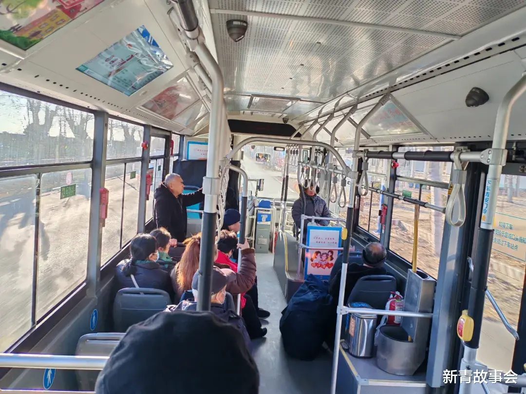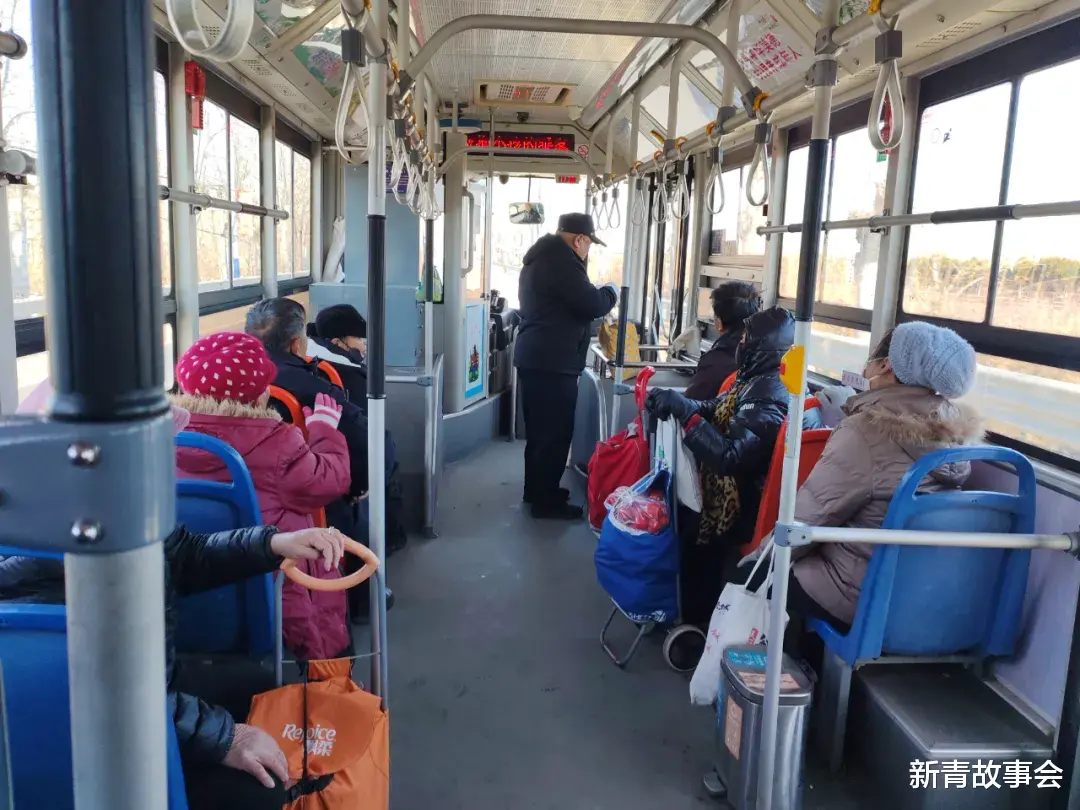 ▼车上已经坐了不少人,大部分是老年人,过了于官屯大桥到双一路路口,有几位老人下车去赶大刘庄集。