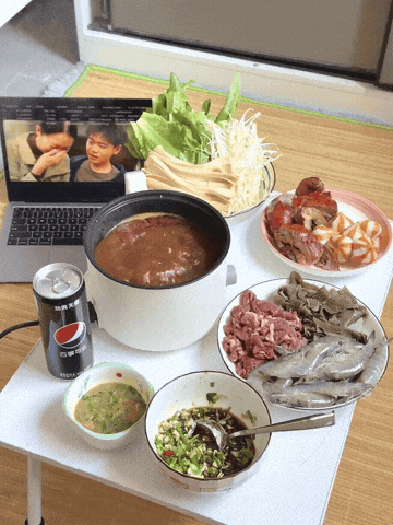 电煮锅这时就派上用场了,放入底料和食材,一个人的小火锅自由就这么简单实现了。