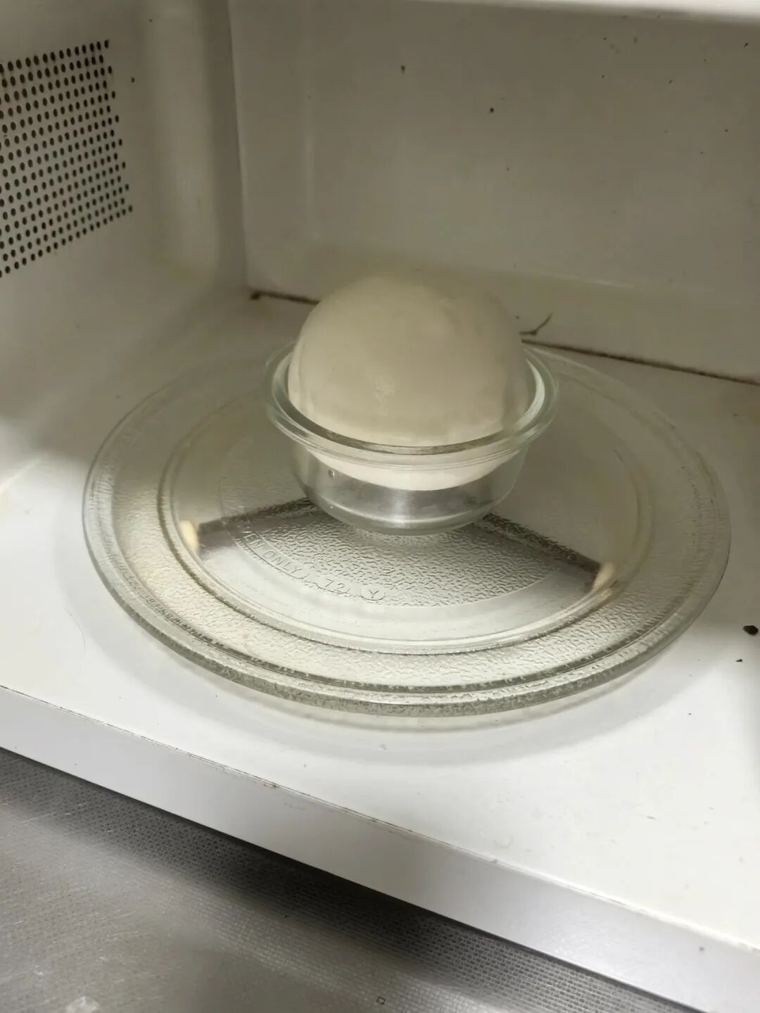 在微波炉里放碗水加热后,把面团放进去利用余温发酵,时间能缩短将近一半。