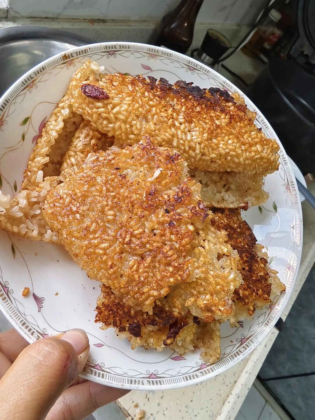 只需把米调点点料(盐酱油蚝油孜然),底部抹点猪油,再放米加水,后面铺上点腊肠啥的让它闷煮,熟了后把米饭盛出来,剩下的就是一层金黄酥脆的锅巴,口感完全不输砂锅煲仔饭。