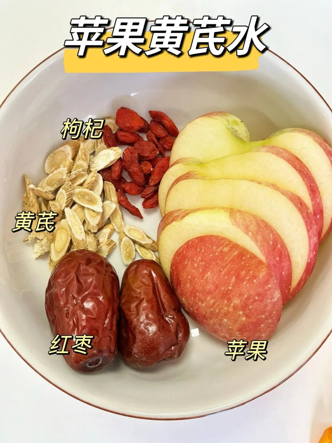 将苹果、黄芪、红枣、枸杞放进去,选择花茶模式,20分钟后一壶清甜滋补的苹果黄芪水就做好了。
