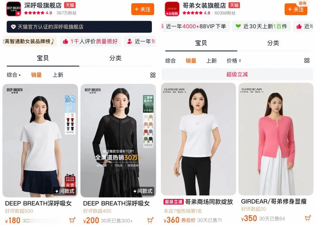 图源:哥弟抖音官旗(左)、深呼吸天猫官旗(右)