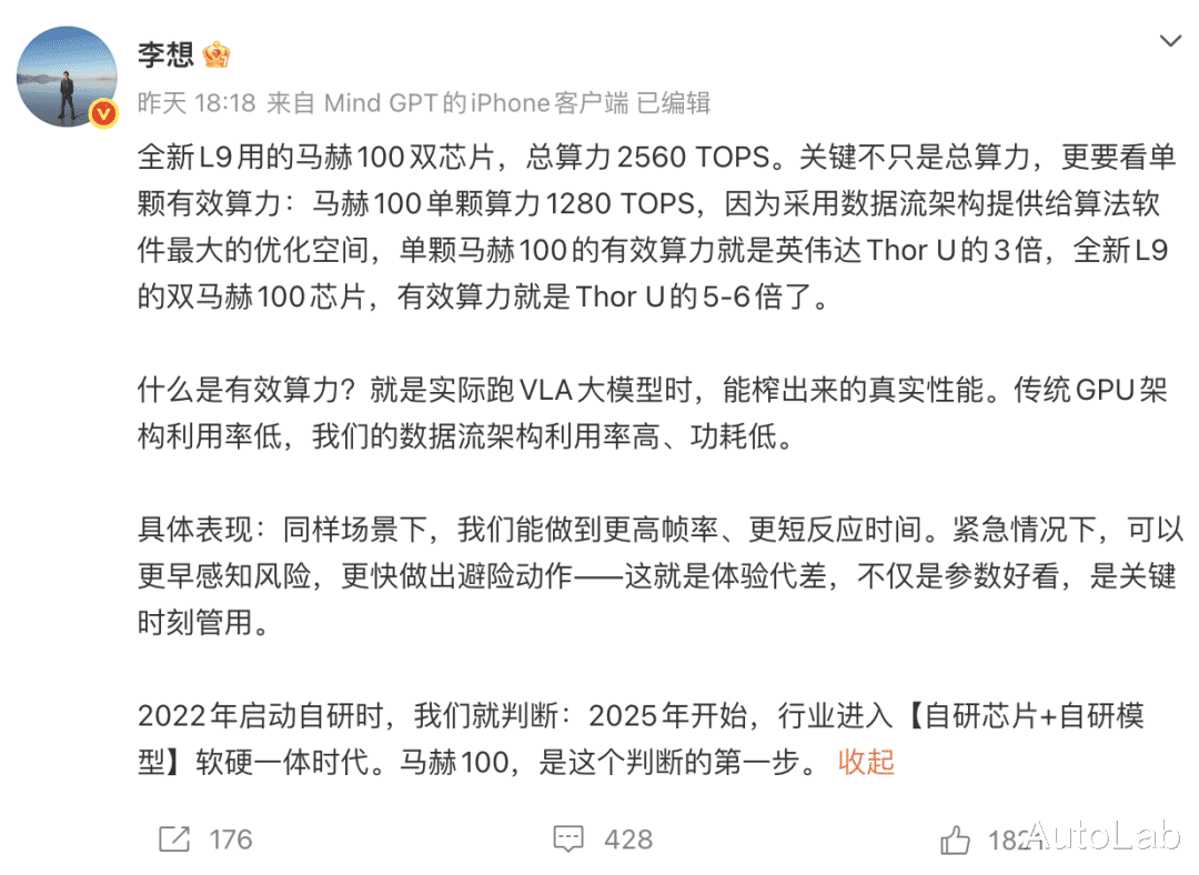 如果就自研芯片的蔚小理三家来看,蔚来要重返第一梯队,小鹏要直奔L4,理想则要打造具身智能机器人。