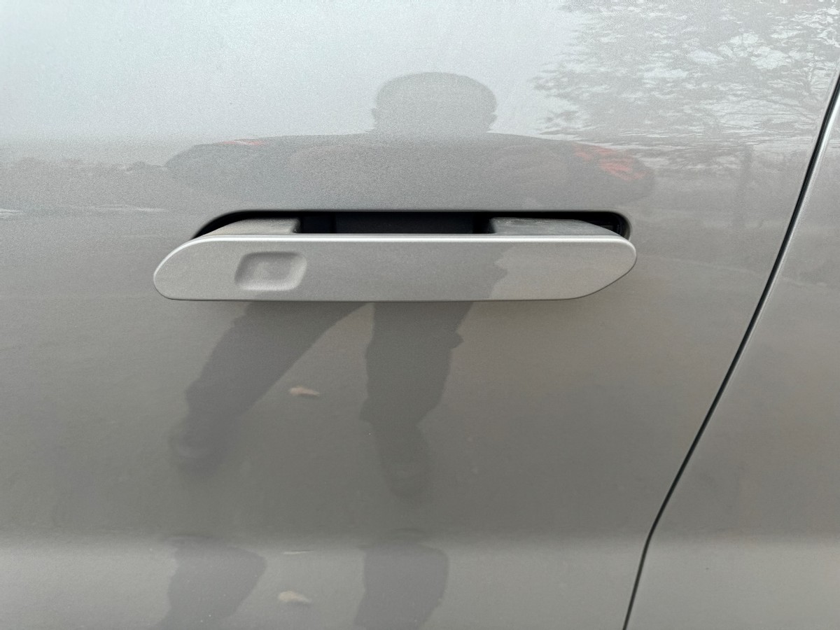 侧身是很优雅的线条变化,5米的车长,从前到后,那就是很完美的呈现,电动后视镜,隐藏式车门把手,R19的铝合金轮毂,细节方面也都做得很好