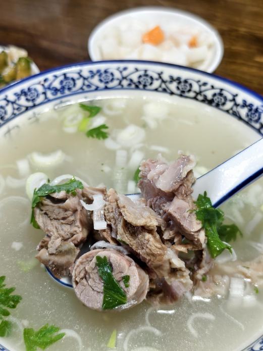羊汤,肉超多,没有羊膻味儿,工作餐喝一碗汤配一个葱花饼就饱了。葱花饼现烙的外酥里嫩,葱油香味儿顺着鼻子钻进脑袋。