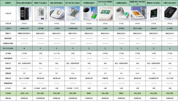 前几天我在朋友家看到他随手买的血压计,结果测起来总感觉怪怪的。那时候我就想,要是有个表格能提前对比就好了。这次测评正好整理好了,下面就是几款血压计的详细数据,看着就清楚多了,也省得以后踩坑。