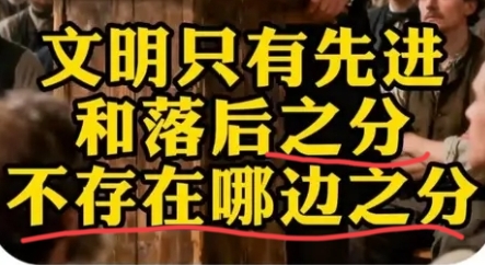 对此,文明既有整体的全人类文明,也有局部的某个区域内的民族文明。故而没有去局部性的文明对比,哪知谁先进谁落后,何是先进何是落后?这就好比全世界的都是一个色,哪来的什么对比?故此其逻辑明显自我矛盾。