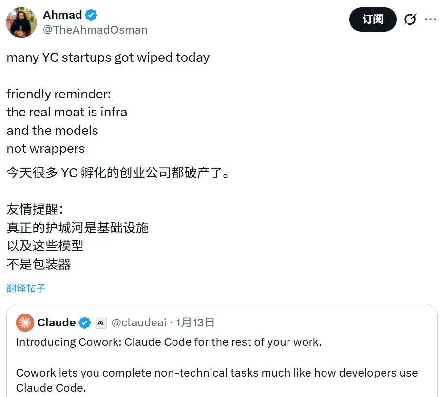 有人感叹,这将使许多 YC 创业项目原地蒸发。毕竟在 AI 圈,真正的硬通货是地基和模型,而不是那些依附在巨头身上的「套壳挂件」。