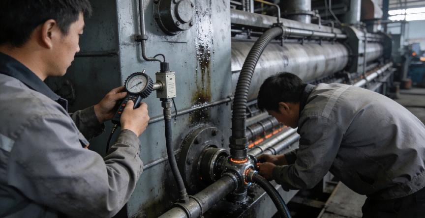 泄漏控制后,检查管路接头、密封件破损情况,更换受损部件并做压力测试;