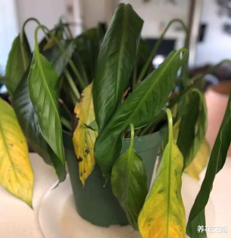 上面是缺水导致萎蔫的白掌