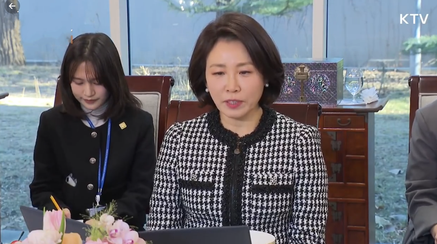 由于是翻译,所以小姐姐就坐在韩第一夫人旁边,夫人在餐桌上发表讲话时,翻译小姐姐一手拿着本一手拿笔,边听边记录夫人收的话,然后翻译成中文。