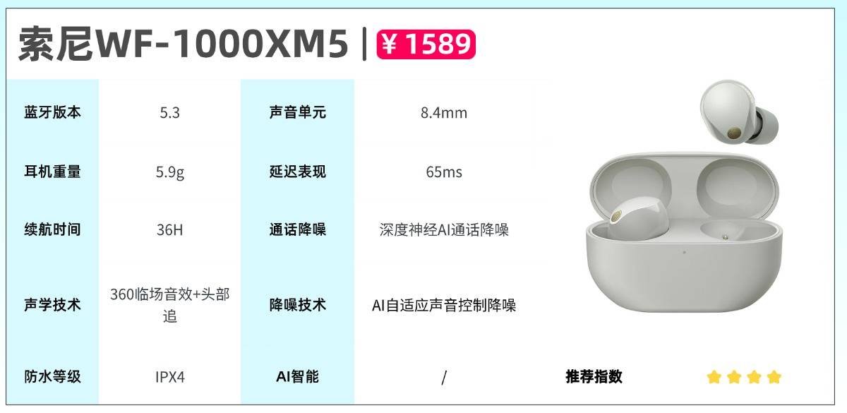 推荐二、索尼(SONY)WF-1000XM5