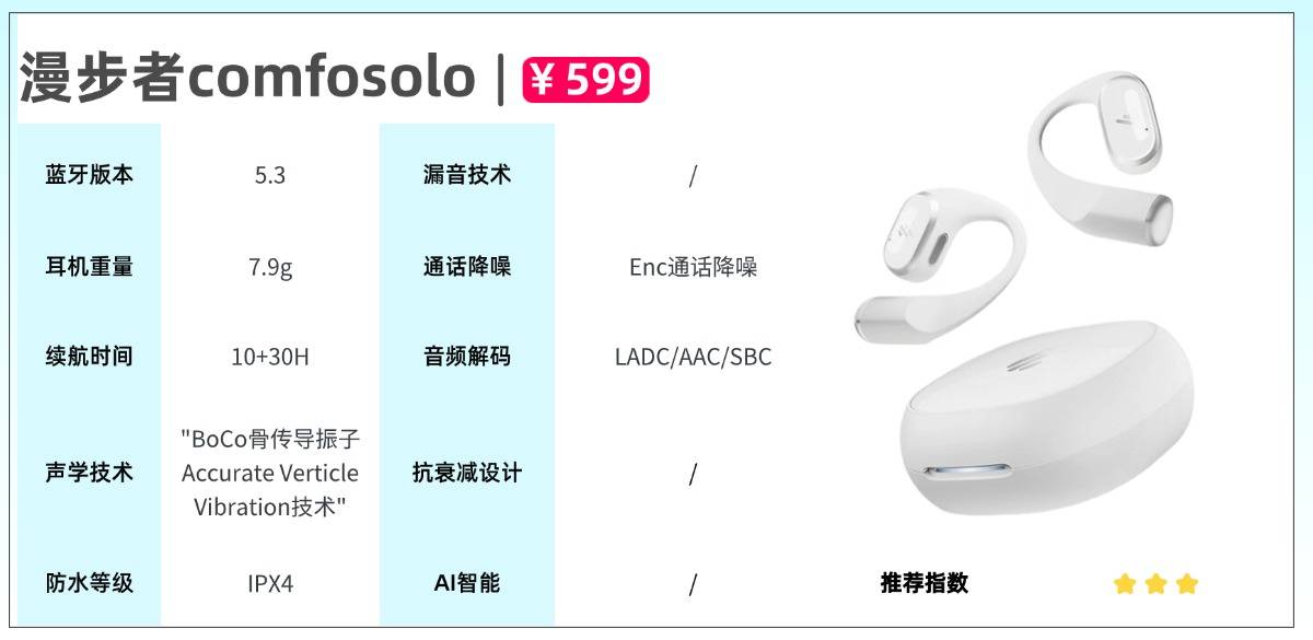 配置方面,蓝牙5.3保障连接迅速且抗干扰,设备兼容性良好;支持双设备智能切换,可在手机通话与PC会议间快速转接,多任务操作流畅高效。