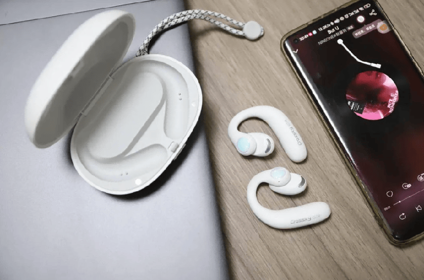 QCY Crossky GTR 是一款专为运动场景开发的开放式耳机。它采用非入耳式构造,完全不进入耳道,从设计层面消除压迫感,长时间佩戴依然保持舒适。其转轴结构受无人机旋翼启发,支持角度调节,用户可依据耳部轮廓自行微调,在实现轻量化的同时,也能在跑跳、力量训练等动态场景中维持稳定贴合。