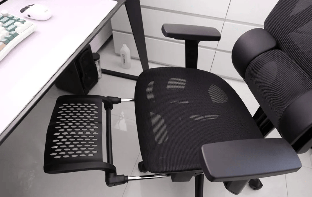 使用感受:坐下后腰是被“托住”的感觉,很稳又不顶。久坐不容易塌腰,身体怎么动,它就怎么跟。座垫软弹、网布透气、后仰顺滑,搭配腿托休息也舒服。