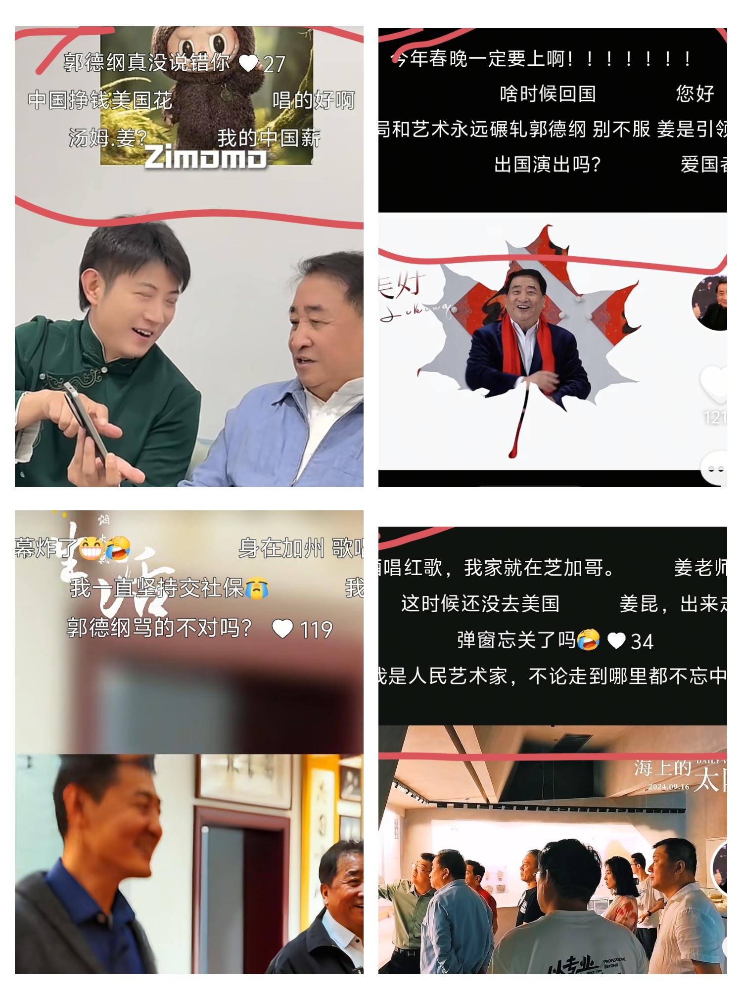 我就不明白了,不就是那段模糊视频中姜昆唱红歌了吗?至于被这么狂轰滥炸,至于从评论区追到弹幕吗?姜昆唱红歌何错之有?难道漂亮国圣诞即将到来之际,我们就不能唱、不敢唱红歌了吗?这是什么奴性逻辑?