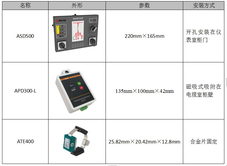 本次项目主要针对10KV高压柜进行智能操控产品以及局放监测产品的配置,智能操控装置ASD500安装在仪表室柜门上,每个柜子一台装置;局放监测装置APD300-L安装在电缆室柜壁上,每个柜子一台装置;每个柜子安装9点无线测温传感器。