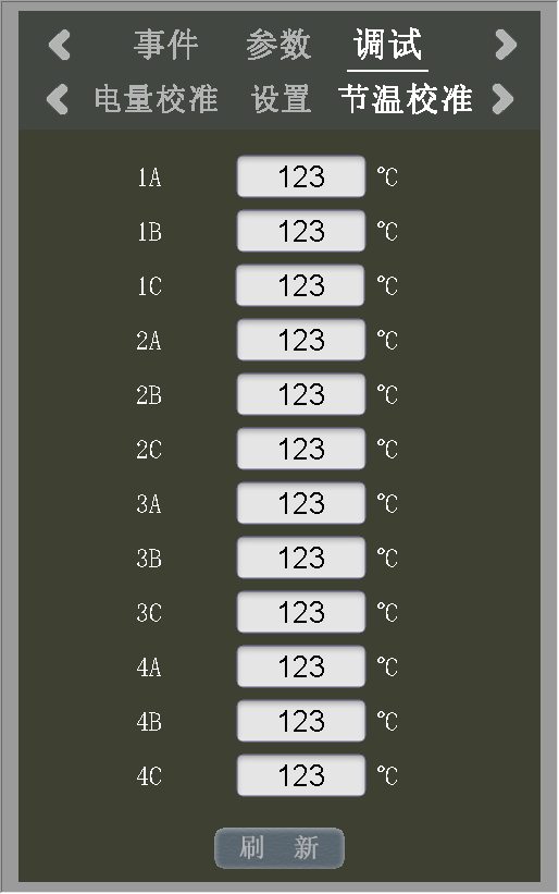 (2)无线测温显示界面:装置通过无线温度接收器和各无线温度传感器直接进行温度值的传输,并采用液晶显示各无线温度传感器所测温度。当温度超过无线测温的高温定值,会产生告警记录,提示节点高温告警。