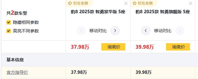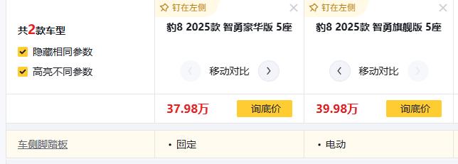 想买插混中大型SUV的车友注意了!要是你在豹8 2025款 智勇豪华版 5座、豹8 2025款 智勇旗舰版 5座,这两款车之间纠结的话,笔者觉得多花2万选豹8 2025款智勇旗舰版,更值!具体情况往下看。