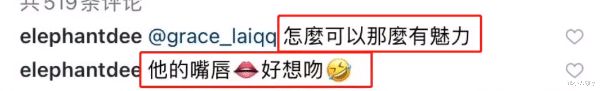 随后又在评论区回复:好想吻他的唇,怎么可以那么有魅力。