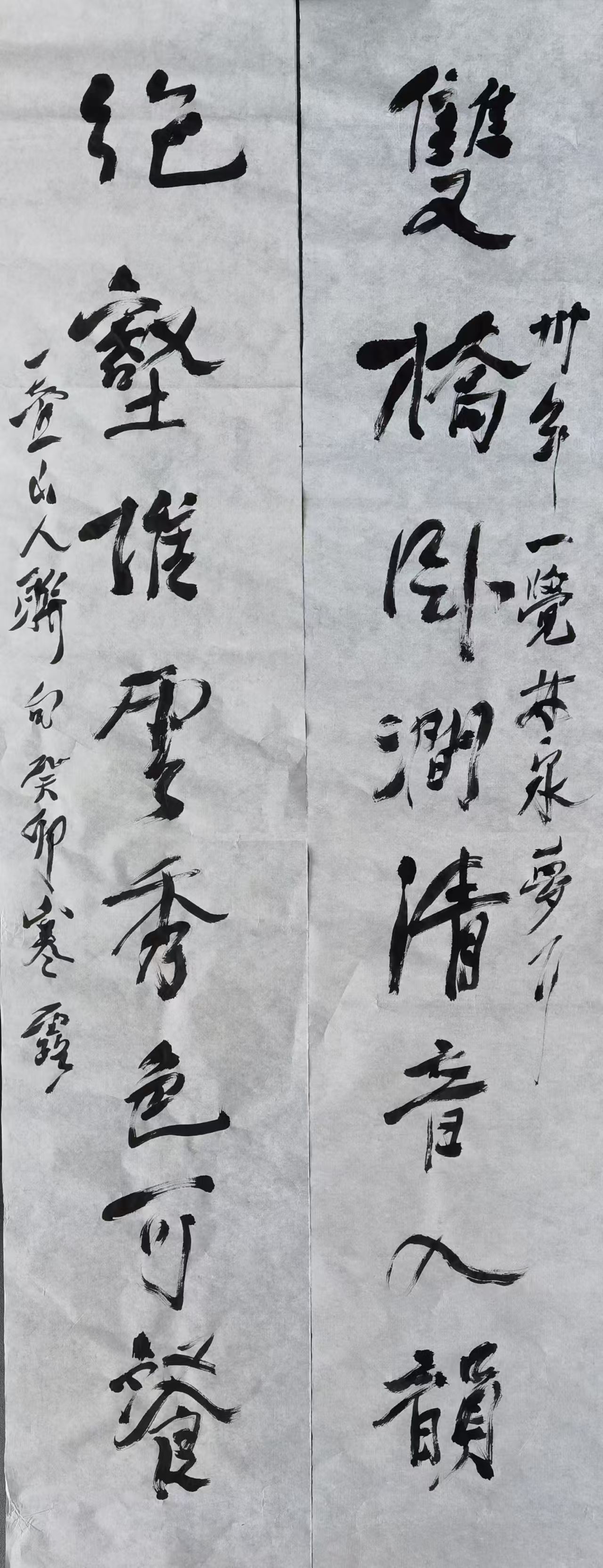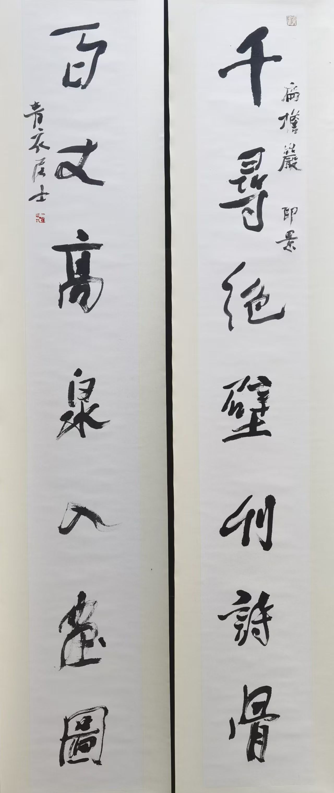 不断有参观者在周德华的作品前停驻。有人盯着清寂的山水,目不转睛;有人默默读着诗句,反复咀嚼。“我觉得这幅作品所呈现的,不只是一幅山水、一副对联,更是一种能被反复感悟、可以久处其间的精神状态。”一位参观者如此说。