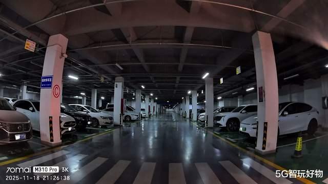 星光夜视是这款记录仪的重头戏,F1.55大光圈比前代M310机型进光量提升78%,再加上自研的星光夜枭算法,彻底解决了夜间拍摄模糊的痛点。有次加班到深夜,小区周边没有路灯,路面漆黑一片,但记录仪画面依旧通透,路边行人的轮廓、对向车辆的车牌都能清晰捕捉,遇到远光直射也不会眩光。地下车库这种极端低光环境下,车辆周围的障碍物和标识也能拍得明明白白,再也不用怕夜间事故取证难。