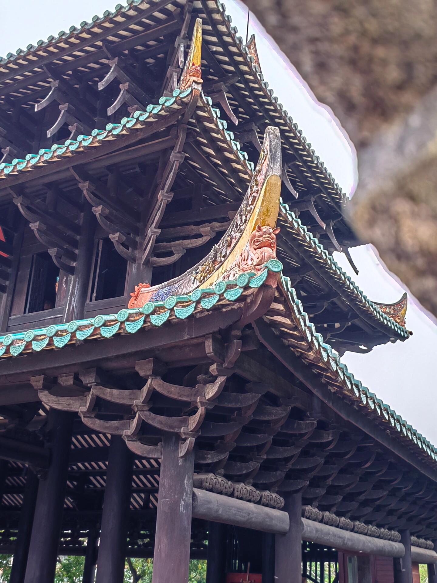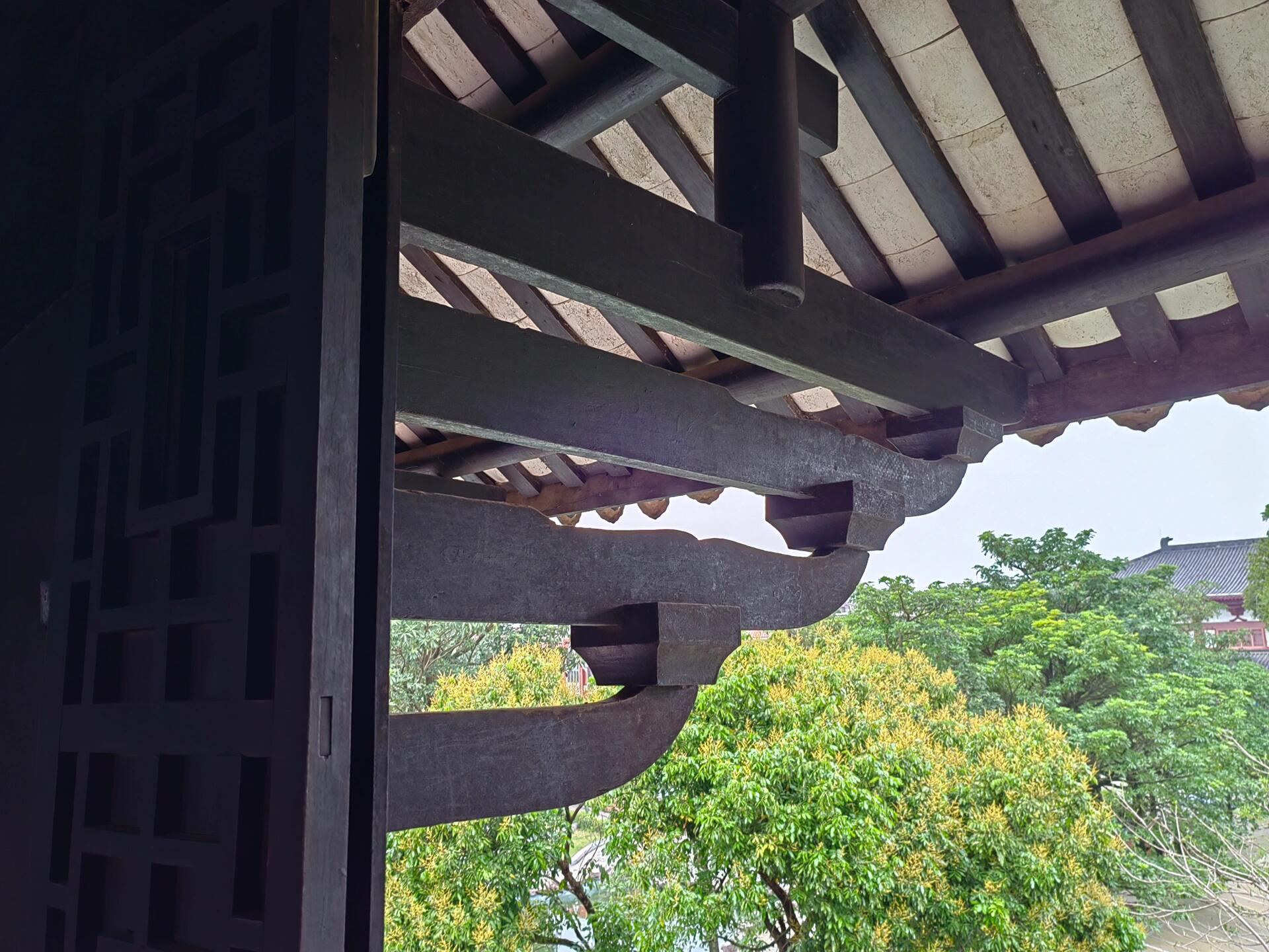 我试着在柱子旁边轻轻跺脚,阁楼只是轻微晃动了一下,那几根悬空柱却纹丝不动。后来查资料才知道,真武阁建成后经历过好几次地震和台风,最严重的一次台风把阁外的大树都吹倒了,阁楼却连一片瓦都没掉。有现代建筑团队来测绘,发现整个楼阁没用一根钉子,全靠榫卯和杠杆结构咬合,哪怕一根梁枋稍微变形,其他结构都能“借力”调整,这种“以柔克刚”的设计,比现在很多钢筋混凝土建筑还抗造。