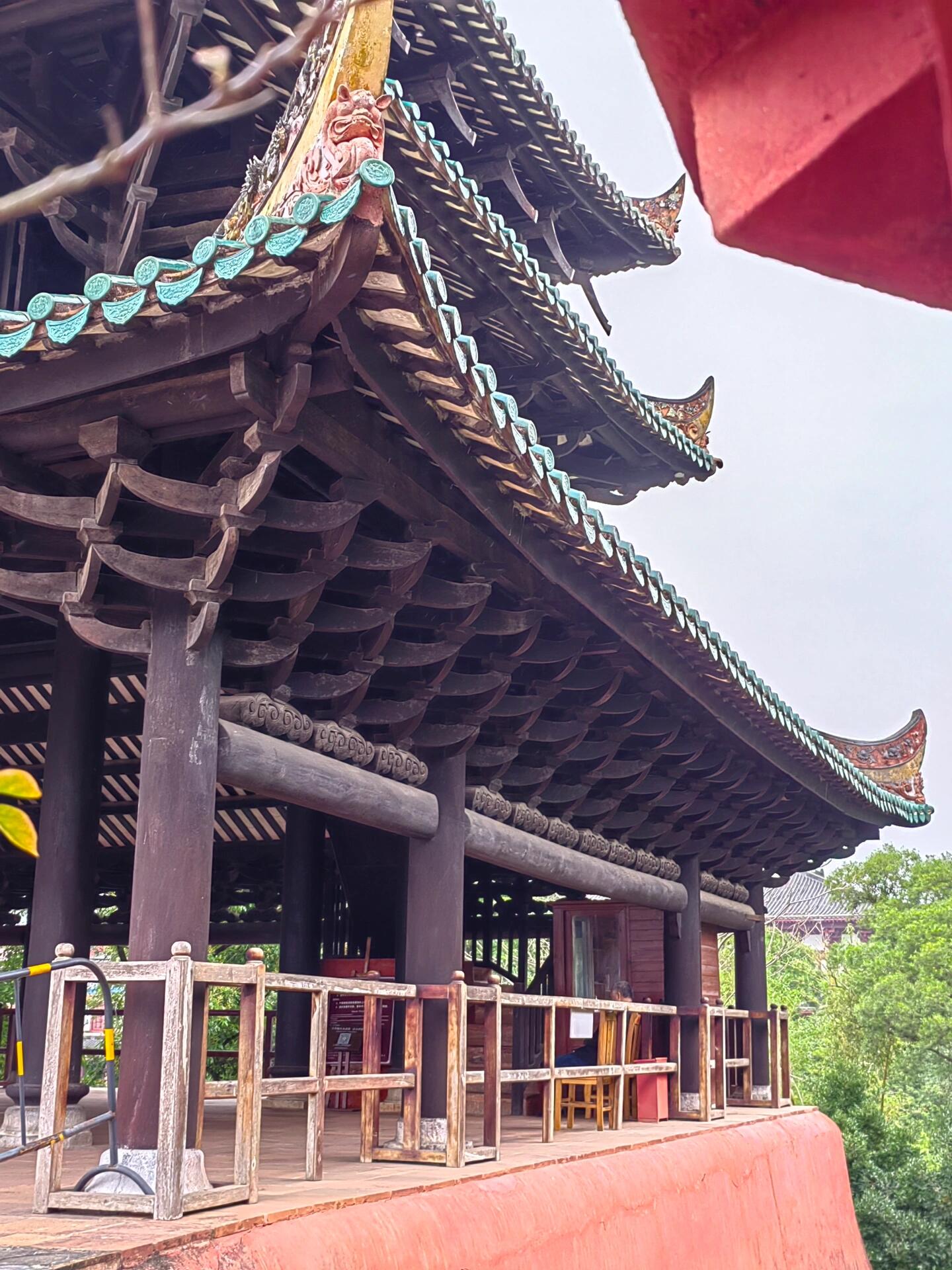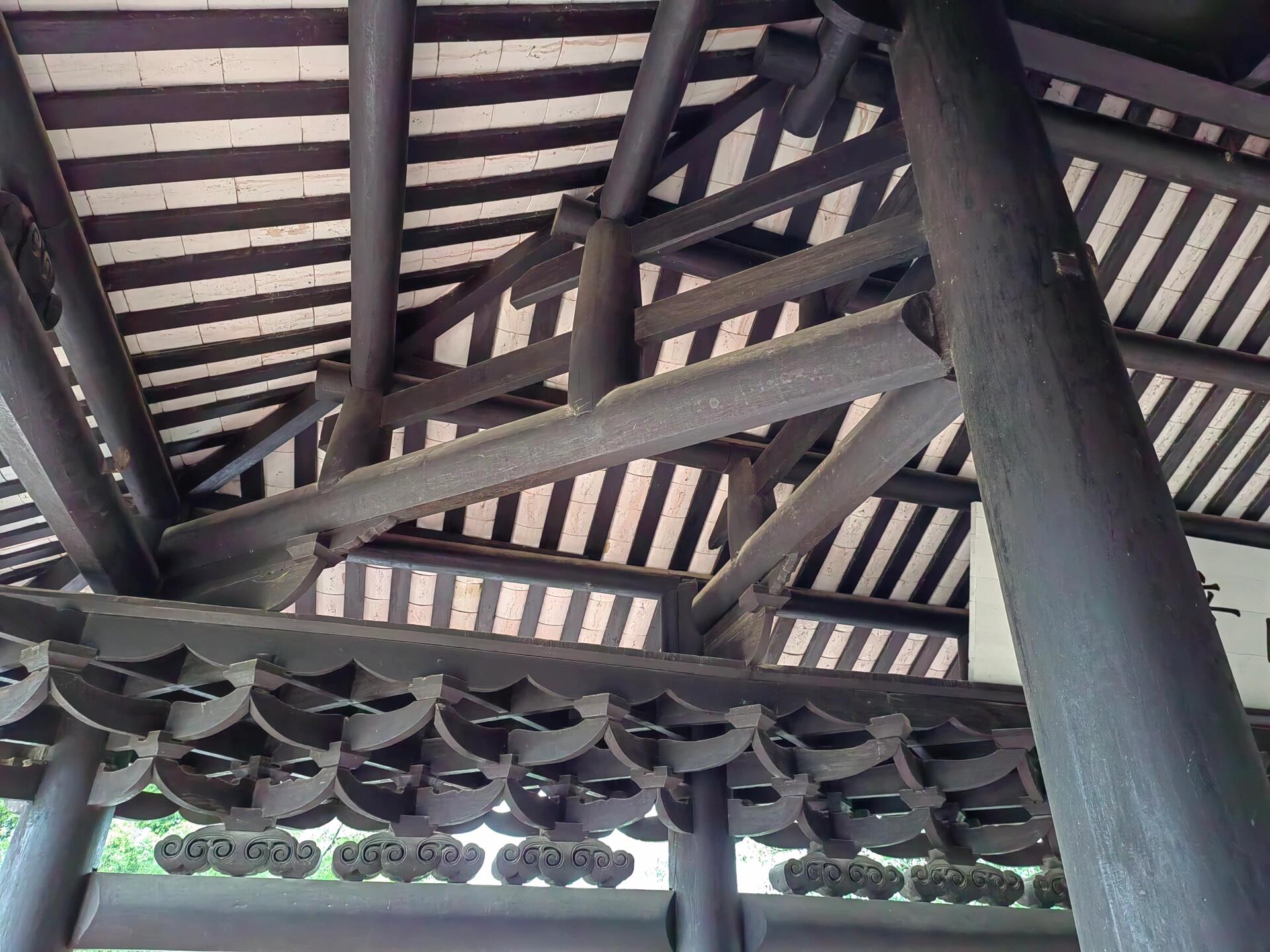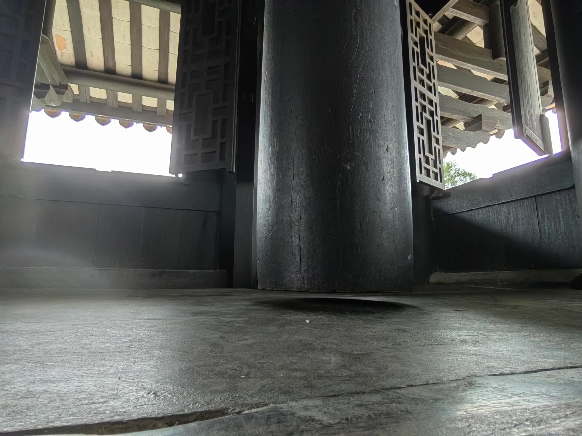 我还注意到一个细节,真武阁的悬空柱并不是“完全悬空”。凑近了看,柱子底部和楼板之间其实垫着一层薄薄的木片,大概有1毫米厚。导游说,这是后来修复时加上去的,原来的柱子真的是“全悬空”,但因为年代久了,梁枋稍微有点变形,为了防止柱子晃动,才加了木片。这个细节又引发了新的争论:有人说“加了木片就不算真悬空了”,也有人说“修复是为了保护,不影响它的历史价值”。