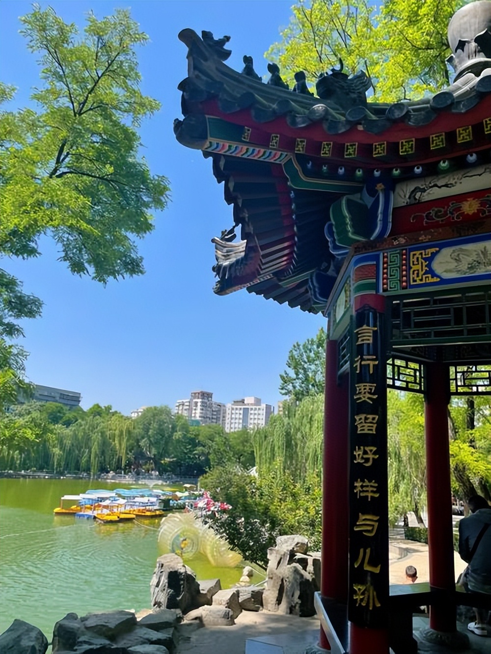 也许是夏日里,在湖边柳树下捞蝌蚪的欢腾;也许是和小伙伴围着假山追逐打闹,满头大汗却不肯停歇;也许是傍晚时分,被爷爷奶奶牵着小手,坐在老亭子下,听他们讲过去城墙根的故事,晚风带着湖水的凉意,吹散了一天的燥热。