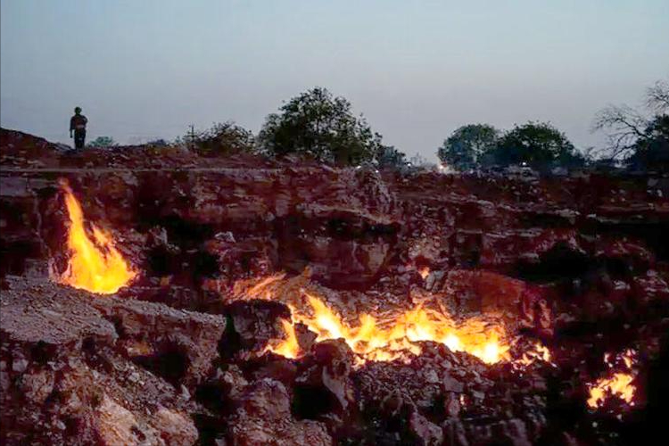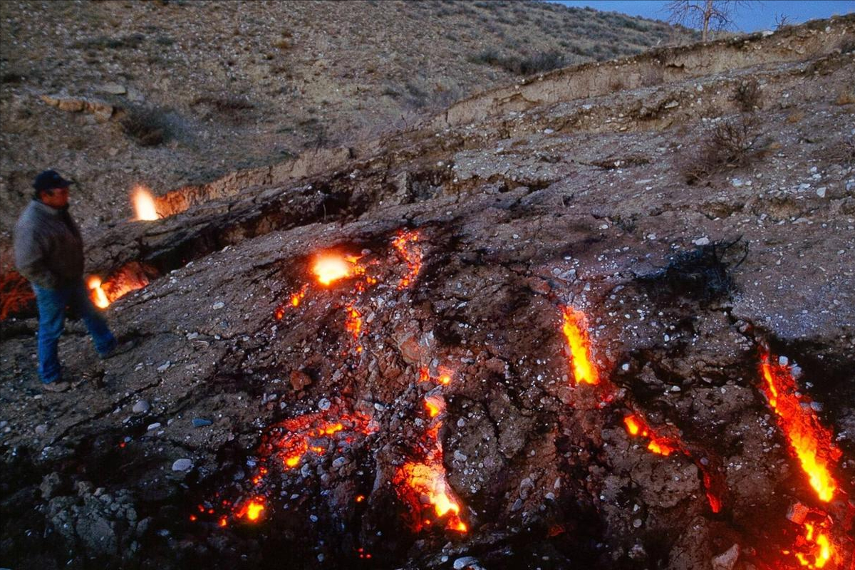 裂缝之中,空气源源不断地渗入地下,与遗留的煤炭接触。