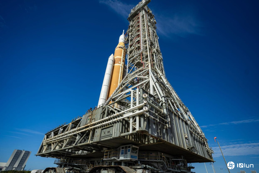 美国航天局于1月17日星期六将价值1100万磅的太空发射系统(SLS)和移动发射平台缓慢推进至佛罗里达州卡纳维拉尔角的发射台。整套322英尺高、顶部搭载猎户座飞船的火箭在老旧的爬行运输车上耗时12小时才完成这段4英里(约6.4公里)的移动。