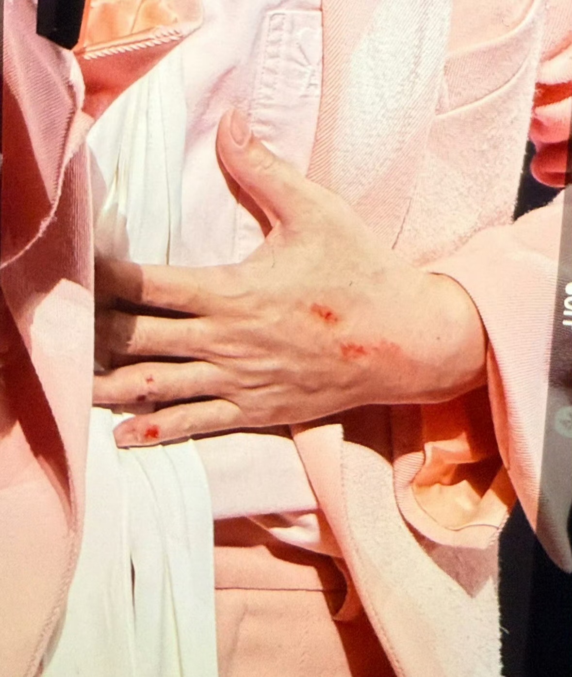 当晚,阿信身着粉色外套,在与F4合唱经典曲目《派对动物》时,走到主舞台与灯光装置的衔接处。监控画面显示,他因未留意到舞台边缘的台阶,踉跄后退时踩空,整个人从约半米高的台基跌落至灯光池内。现场瞬间响起此起彼伏的惊呼声,吴建豪与工作人员冲上前搀扶,镜头捕捉到阿信手部擦伤流血的画面。尽管疼痛难忍,他仍强撑起身,用外套遮挡伤口后返回舞台完成表演。这一幕被网友称为“教科书级的职业素养”,却也因舞台安全隐患引发激烈讨论。