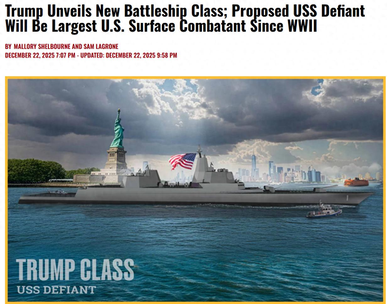 近日美媒《海军协会新闻》、《海军新闻》等媒体报道称,12月22日,美国总统唐纳德·特朗普、国防部长皮特·赫格塞斯、国务卿马可·鲁比奥和海军部长约翰·菲兰,在海湖庄园举行的发布会上一同推出了特朗普级战列舰的相关海报。