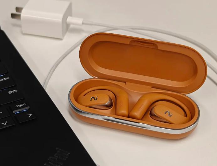 整个机型设计结合反Z型与C型桥结构,TPU高弹材质触感舒适。约5克的单耳重量极为轻盈,佩戴稳固且近乎无感。音质方面主打定向传音,人声清晰度尚可,但整体音质单薄,低频几乎无存在感,音乐聆听体验较为平淡。支持蓝牙5.4,连接稳定。双麦通话降噪应对安静环境足够。续航为单次5.5小时,综合19.5小时,并具备IPX5级防水。