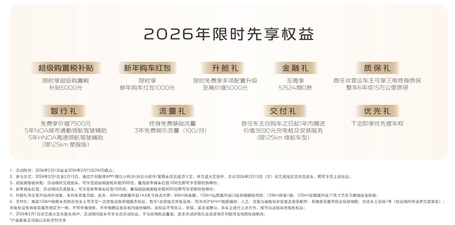 春节探亲场景,银河星耀 6 的面子与实力兼具。6.88 万起的售价搭配越级配置,外观时尚大气,内饰精致舒适,走亲访友倍有面子。宽敞的空间能装下给长辈的年货、给孩子的礼物,全家同行不拥挤;硬核的安全配置,让长途探亲之路更安心;多重购车权益叠加,购车成本更低,春节换车无压力。同时,智能辅助驾驶系统能降低长途驾驶疲劳,自动泊车功能让探亲时停车更便捷,完美适配春节探亲的各类需求。