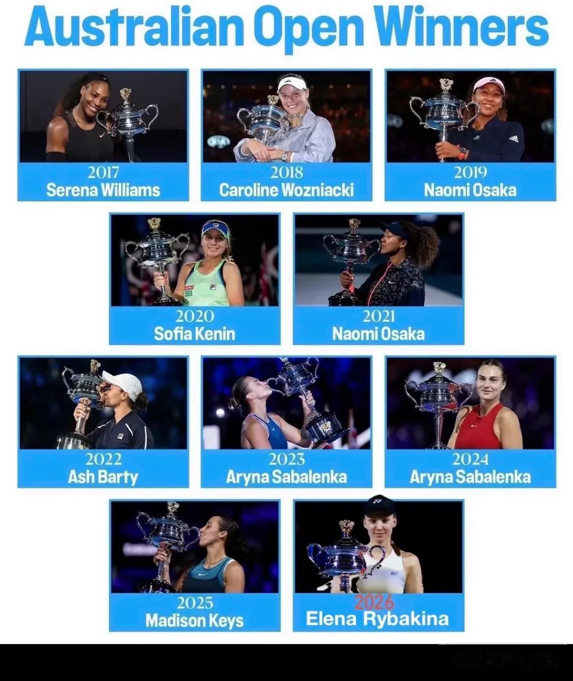2️⃣萨巴伦卡连续四年闯入澳网女单决赛,依然是四大满贯决赛平台的主要成员,双巴论剑可能会成为WTA赛场主旋律!