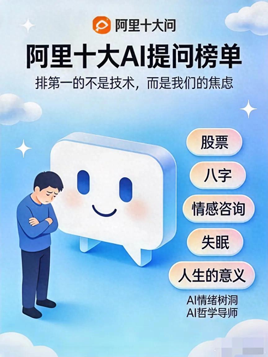 昨天,阿里千问App发布了一份“2025十大AI提示词”榜单,看得人心里五味杂陈。排在榜首的,是“股票”。紧随其后的,不是什么高深的代码问题,而是“八字”和“情感咨询”。再往后翻,“失眠”和“人生的意义”也赫然在列。