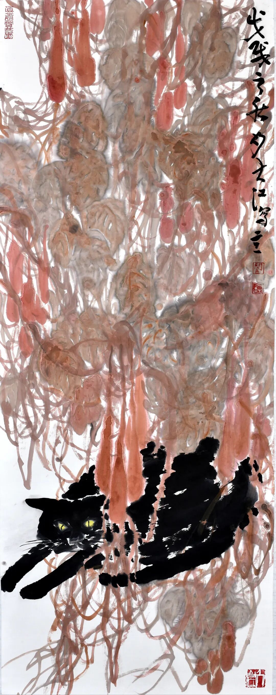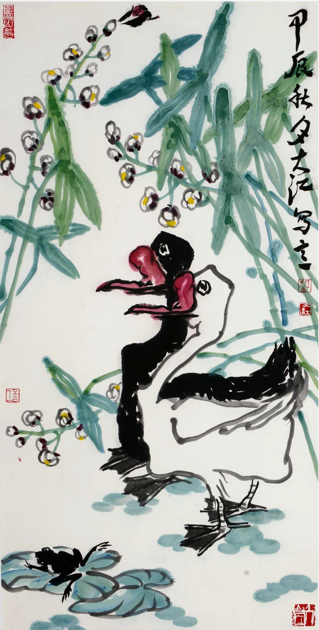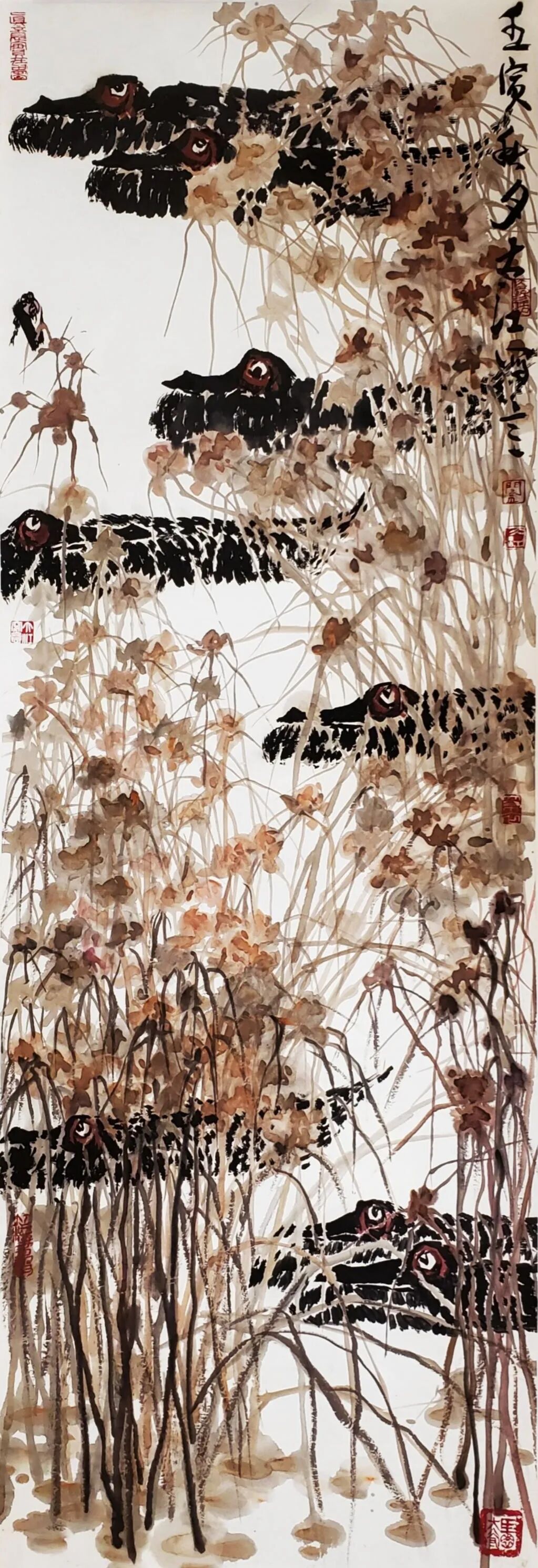 总之,闫大江的花鸟画作品是传统与现代、地域与人文的有机融合,既彰显了中国写意绘画的深厚底蕴,又展现了当代艺术家的文化自觉。他以笔墨为舟,载着对自然、生命与文化的思考,在大写意花鸟画领域开辟出一片独特的艺术天地。