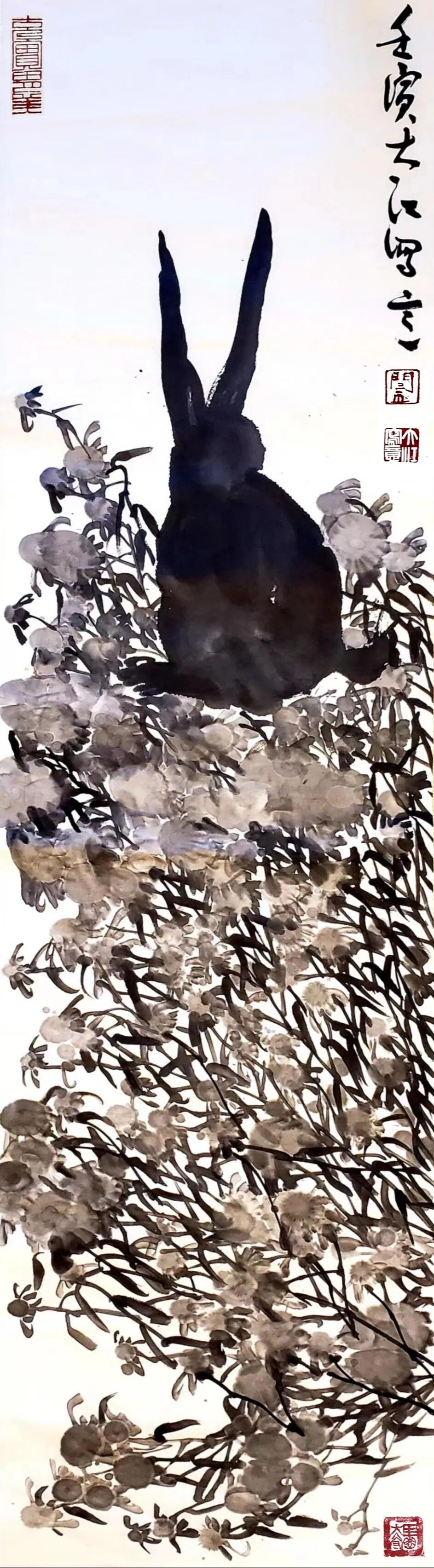 定居石家庄后,闫大江的创作逐渐融入燕赵大地的雄浑气象。他参与的“燕赵气象”主题创作中,太行山的巍峨、滹沱河的壮阔成为其花鸟画的潜在背景。例如《秋霜似雪染墙篱》中,篱笆与菊花的构图虽简,却通过枝干的刚劲线条与墨色的厚重层次,暗喻燕赵文化的坚韧不拔;而《静观》中磐石与幽兰的组合,则展现出“君子固穷”的儒家风骨,与燕赵大地的慷慨悲歌气质遥相呼应。