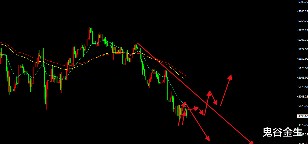 操作上建议靠近5050附近空一次,看4960,破位看4800,如果美盘上去速度较快就放弃空,二是去追破位多;如直接下破4960可速度追空进去,直接看4800;