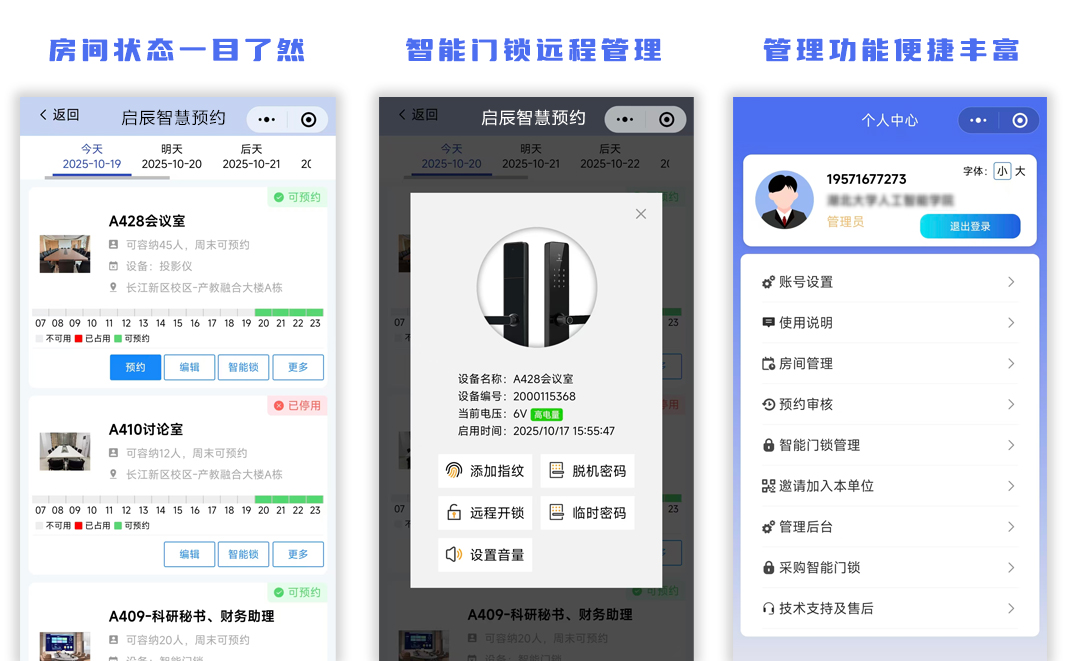 湖北大学20间会议室试点一个学期,平均上座率从六成提到近九成;因“闯入”产生的纠纷降至零;行政人员再也不用逐个房间派钥匙。