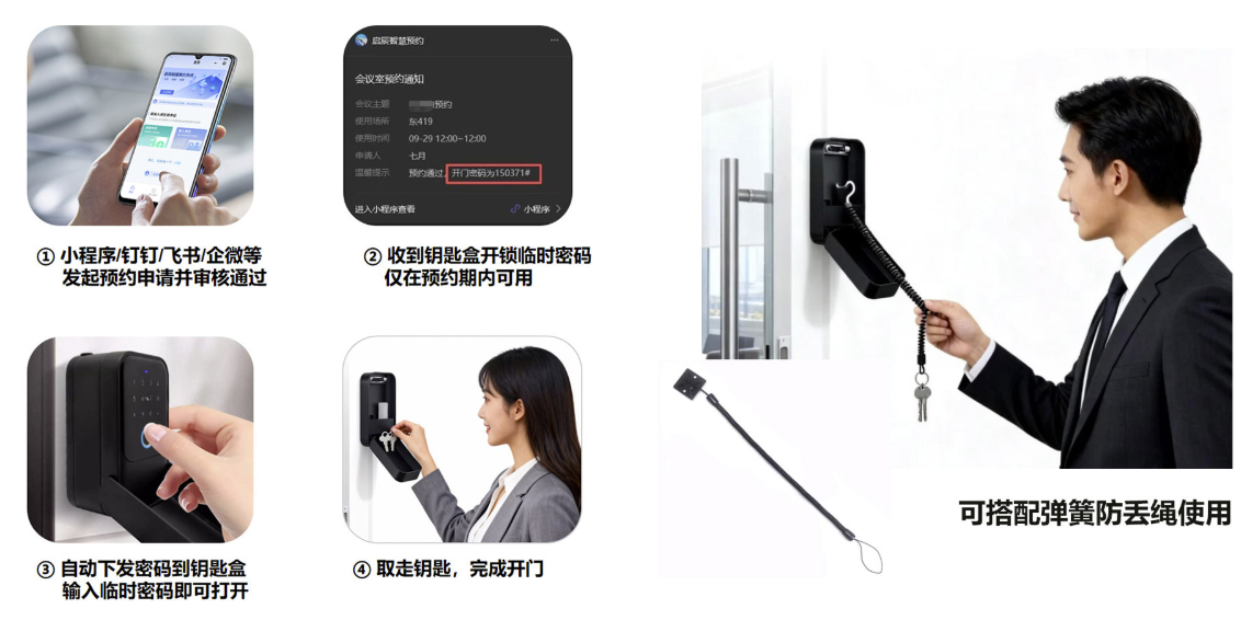 关键词:会议室预约;门禁管理;临时密码;人脸识别;动态二维码;