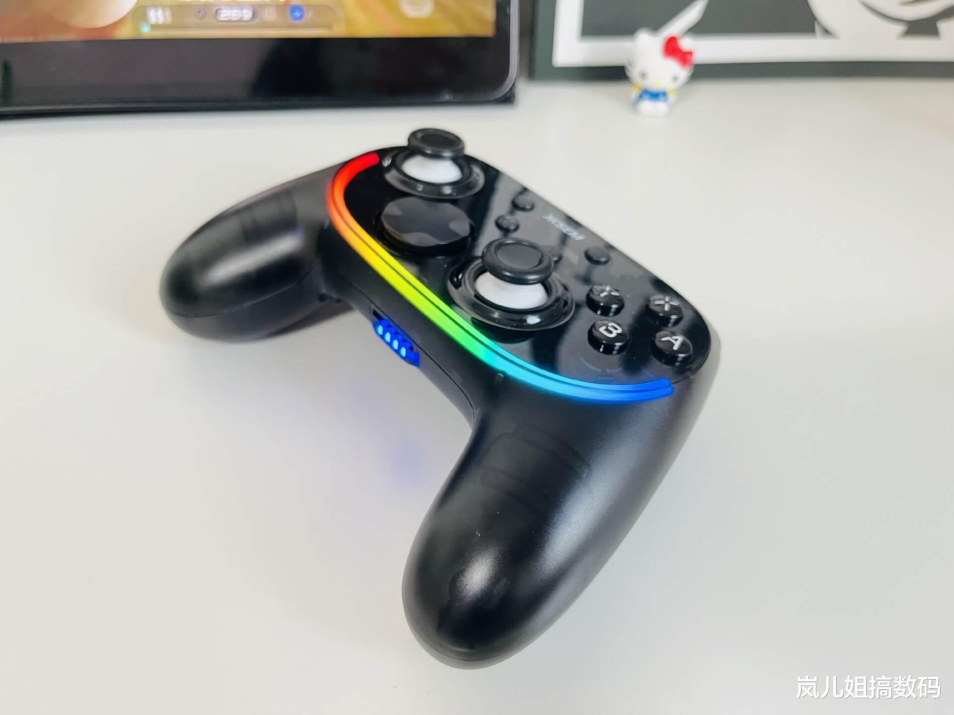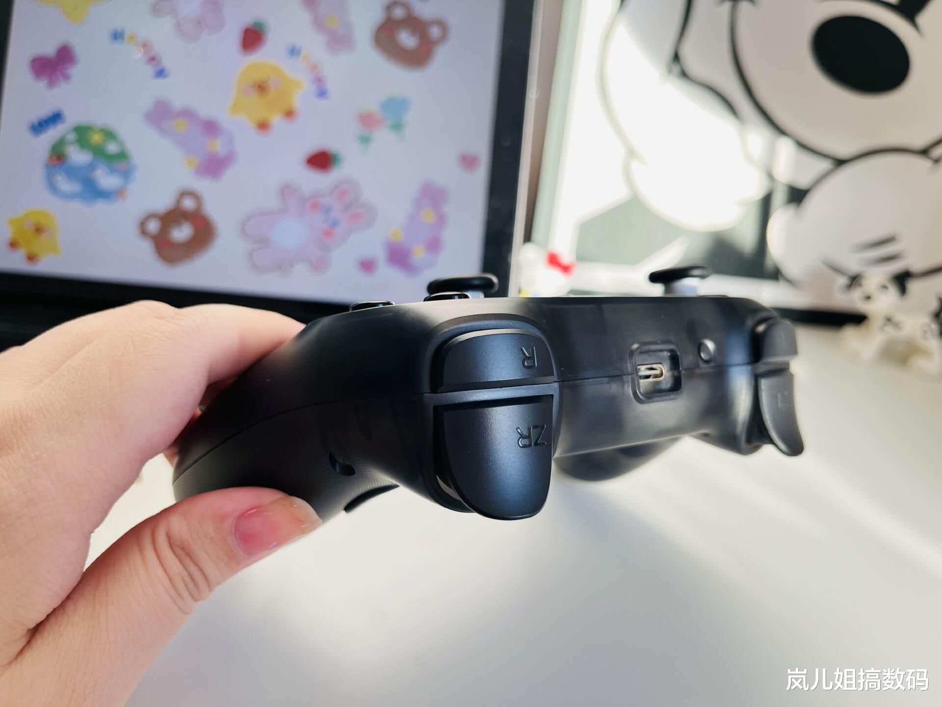 全新混合十字键设计很用心,采用八向自由架构+中盘高低差创新设计,按键反馈清脆利落,灵敏度识别很高,方向识别精准,能在需要连续按压时保持丝滑,玩《超级马里奥》时上下左右移动无卡顿特别丝滑,格斗游戏时,复杂搓招能轻松触发,理论寿命达500万次,经得起考验。整个按键布局合理,使用起来特别顺手,不管是ABXY键还是肩键、背键,动动手指都能轻松触及,就算长时间玩起来也不觉手累。