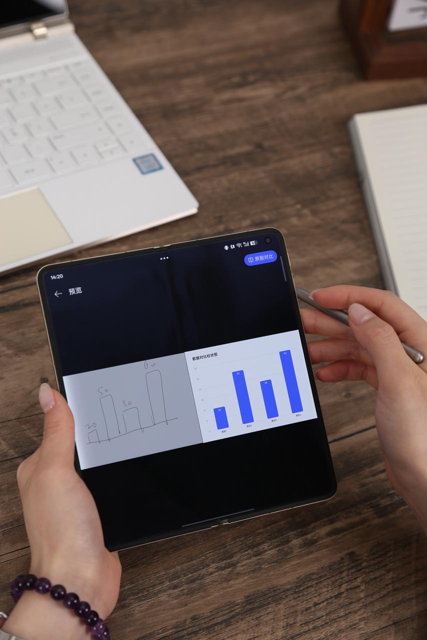 月度数据汇报也省事了。手写一堆数字,圈一下,自动生成柱状图。以前我得回工位开电脑重新做,现在现场就能搞定。财务同事看到后,她说都有点想搞一台了。