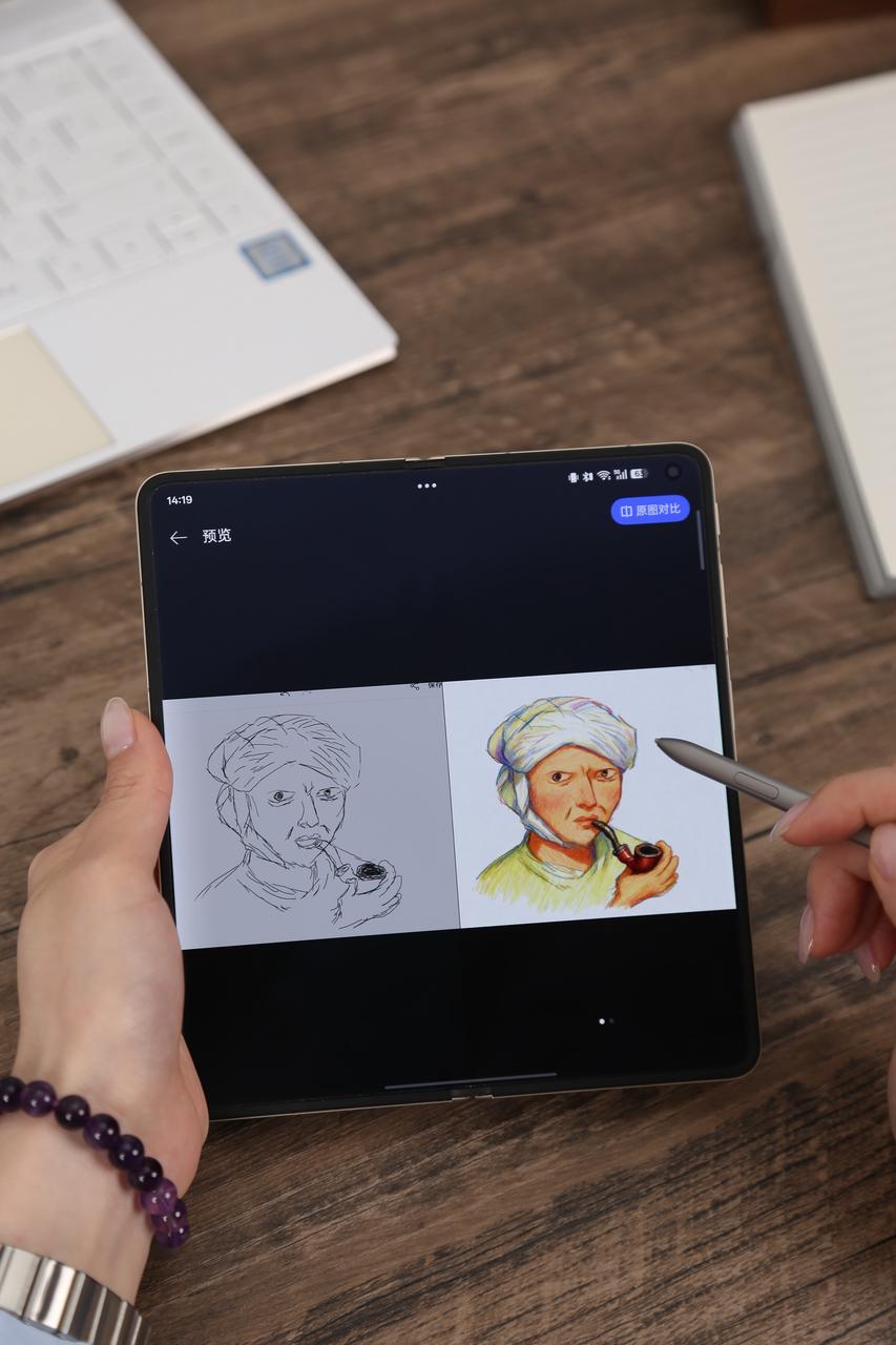 更绝的是自动计算功能。手写公式,加减乘除、三角函数都行,写出来就自动出结果;偶尔摸鱼画个草稿,圈一圈点一点,AI还能渲染成水彩画、3D效果。发朋友圈被问是不是报班了😁以前出门带笔记本+平板,现在一台Find N6一根笔,够了。虽然没多牛,但确实方便了不少👌
